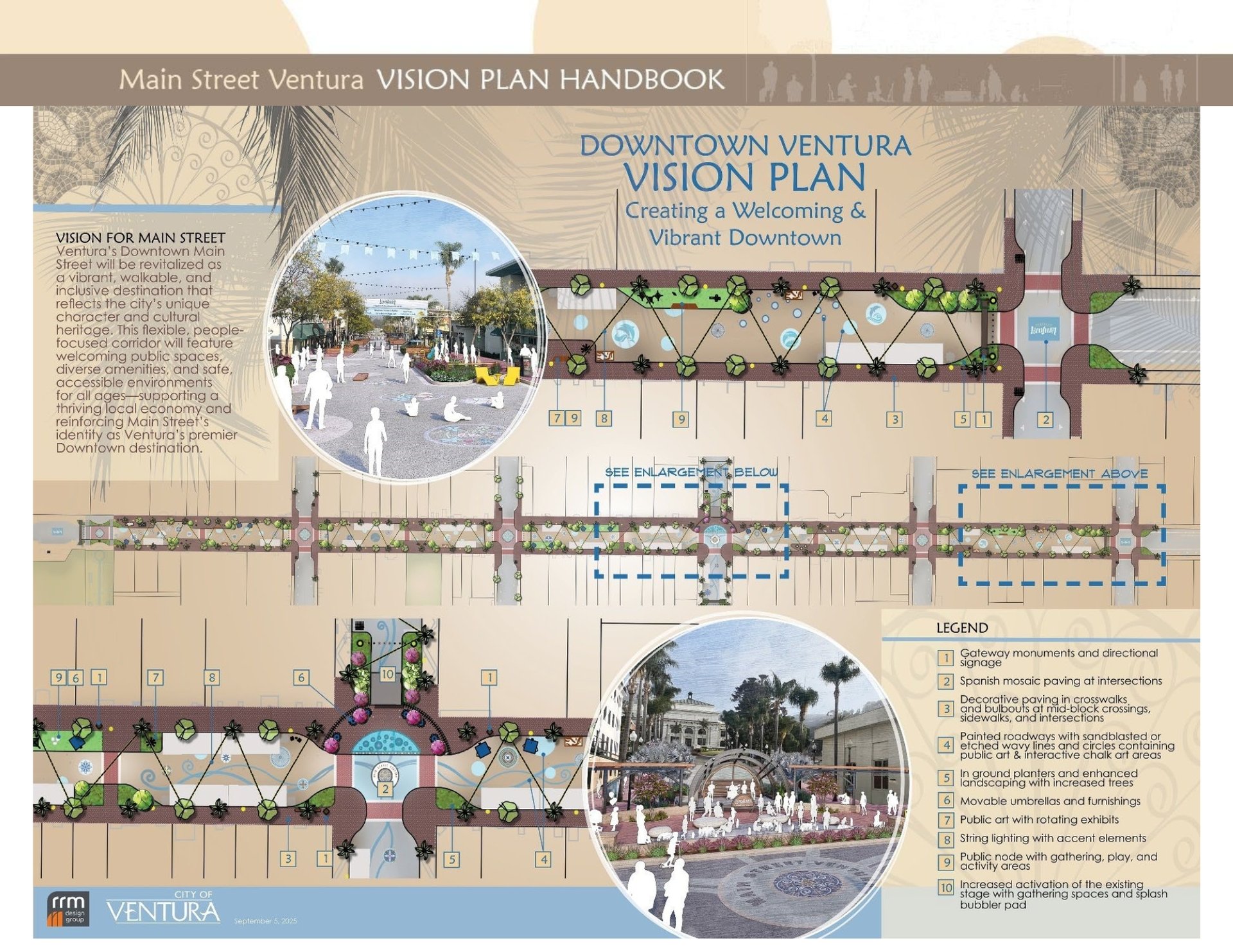 After years of public debate, the Ventura City Council voted 6–1 in September 2025 to keep Main Street permanently closed to cars and open to pedestrians. With that decision made, the city has released its Main Street Moves Vision Plan Handbook, a detailed roadmap for what the next decade of downtown improvements could look like.