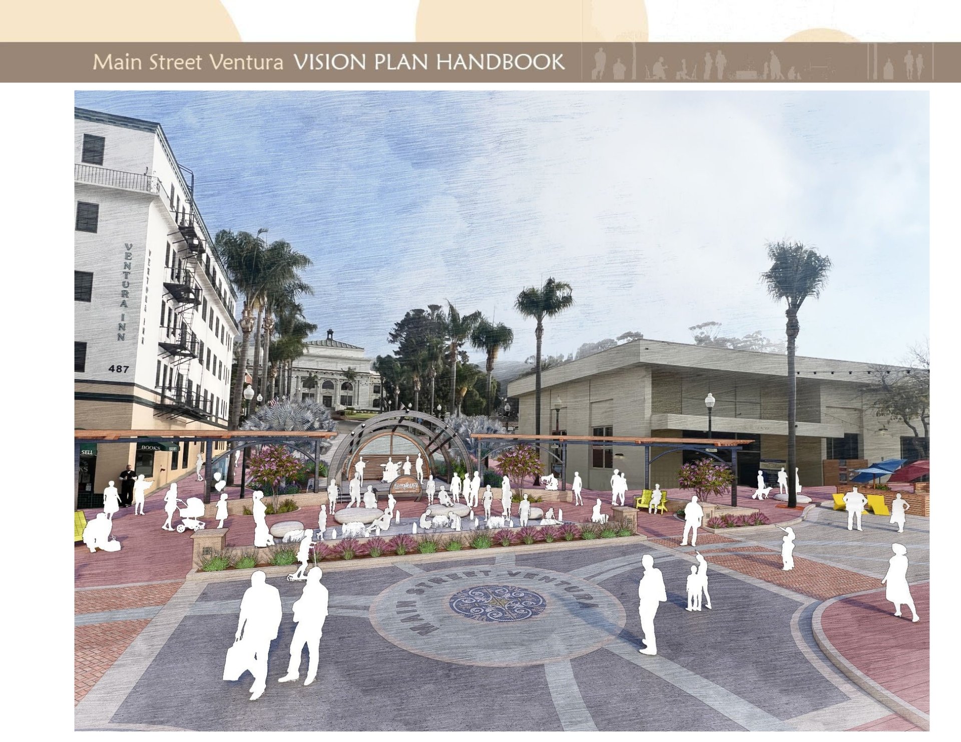 One of the most exciting concepts is the transformation of the California Street and Main Street intersection, what the plan calls the “heart of Downtown Ventura.”