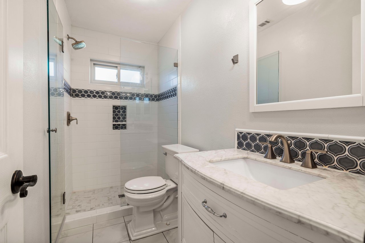 This beautifully updated, contemporary home is sited in a well established neighborhood on Ventura's East End. Nicely upgraded throughout, highlights include luxury vinyl plank flooring on both levels, a chef's kitchen with stone counters, stainless steel appliances and newer cabinetry, and an adjoining, bright living room with ductless air-conditioning and a glass slider leading to the backyard. Completing the first floor is a dining room with coffered ceilings, a spacious family room with a brick fireplace, a bedroom and updated bathroom and the laundry room leading to the attached two car garage. There are four bedrooms in total, three of which are upstairs, including the primary bedroom and bathroom. The primary bedroom features oversized closets, a tastefully remodeled ensuite and ductless air-conditioning. The two remaining secondary bedrooms, as well as a hall bathroom and a built in office nook finish the second floor. This stunning home is complete with a lush backyard, with real grass and enough space to play and entertain.